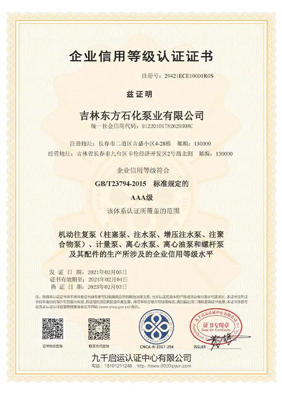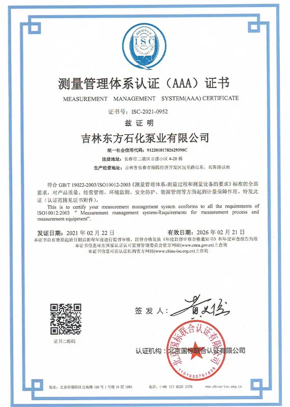 ООО Цзилинь Дунфан Нефтехимическая Промышленность Насосов основан в 2006 году, — это технологическое предприятие, специализирующееся на исследованиях, разработках и производстве насосов и сопутствующего оборудования для нефтехимической промышленности. Штаб-квартира компании расположена в районе Цзютай города Чанчунь. Продукция компании в основном используется в нефтяной, химической, текстильной, металлургической, бумажной, судостроительной, горнодобывающей и фармацевтической промышленности. Компания является ведущим производителем комплексного химического оборудования, использующего насосы в качестве основного двигателя. Компания внедряет сетевое управление и получила сертификат международной системы качества ISO9001 в 2011 году. Разработка продукции, исследования, проектирование, производство, контроль, сборка, испытания и послепродажное обслуживание подкреплены строгой организационной структурой и четким подходом к управлению.
